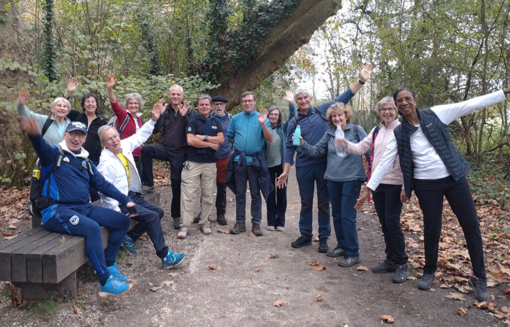 Nous étions 16 à nous retrouver ce 13 novembre 2025 près de la bibliothèque Jean Vautrin au point de départ de cette balade dans les parcs de Mandelieu et Mandavit à Gradignan.