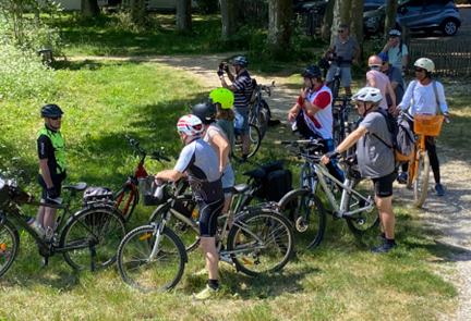 La première balade à vélo a connu un grand succès puisque 17 courageux équipés de vélos de ville, VTC ou VTT à assistance électrique ou pas, étaient au départ. Pour le plaisir de tous, le printemps était également de la sortie.