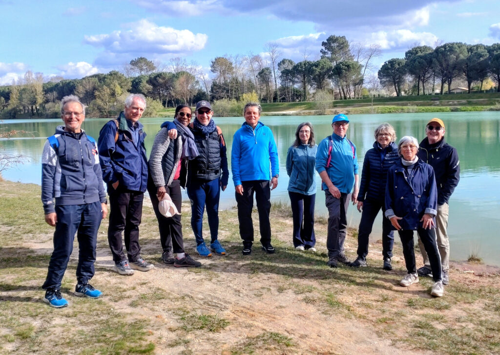 Vite, vite, nous avons emprunté le Chemin de la Pluge pour atteindre le charmant lac bleu, et c’est vrai, il est bien bleu ! Nous avons ensuite longé un centre hippique pour reprendre des chemins herbeux, traversé les vignes du Château Seguin et atteint le magnifique lac vert, et c’est vrai, il est bien vert ! Nous étions 11 et avons parcouru 11 km sans même nous en rendre compte.