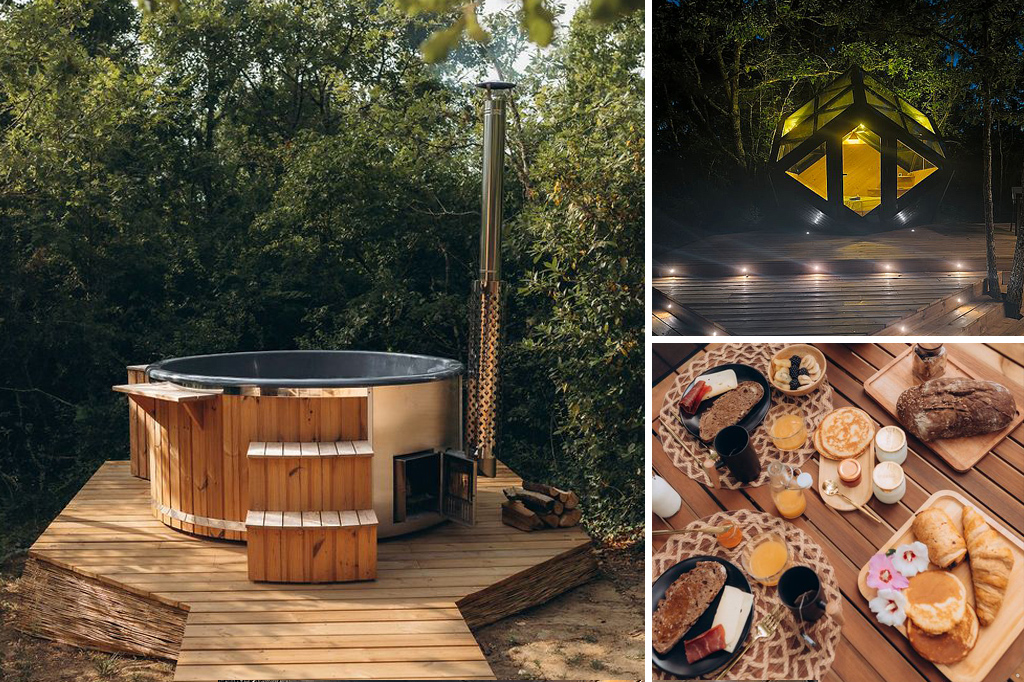 Vous pourrez admirer les étoiles depuis votre lit dans une cabane de verre design double vitrage ouverte sur la forêt.