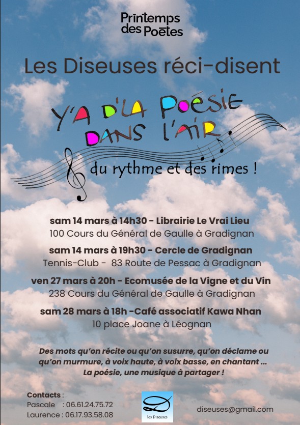 Plus d’infos : au Kawa Nahn 05 56 92 76 60 / ou par e-mail : diseuses@gmail.com